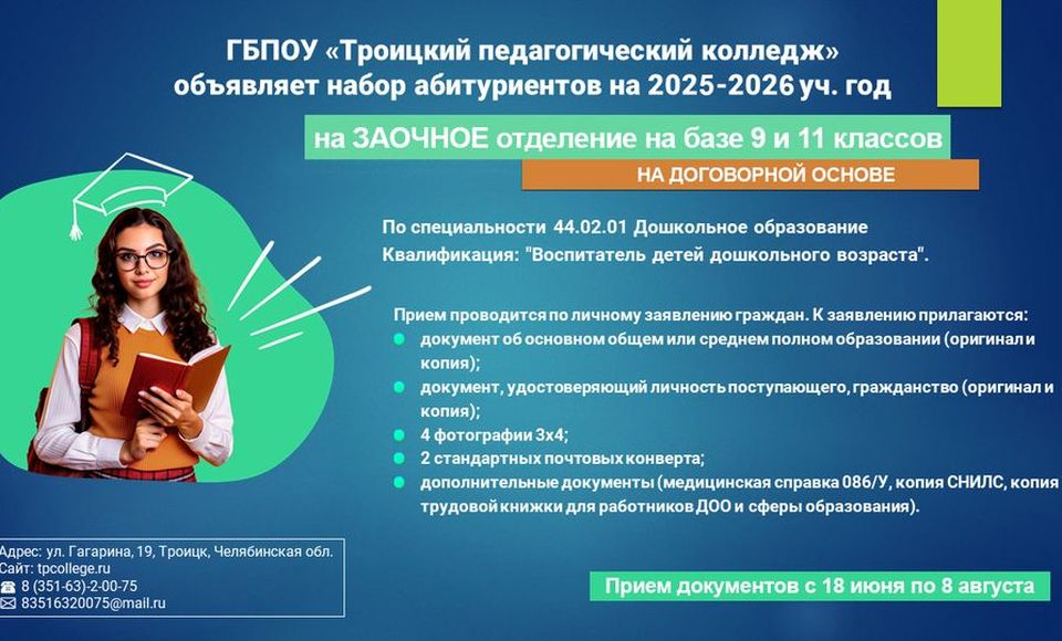 Троицкий педагогический колледж - учебное заведение, стремящееся подготовить разносторонних специалистов, способных гибко перестраиваться, работать в детских учреждениях разного профиля, обучать и воспитывать группы детей с различным уровнем подготовки и развития. Рынок труда с каждым годом становится все более требовательным. Найти свое место в системе частных и государственных учебных и воспитательных учреждений смогут только высококлассные специалисты, которые обладают большим объемом знаний, владеют, умеют работать с компьютерами, другой сложной техникой.