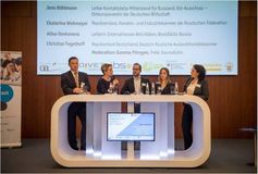 Ключевым мероприятием первого дня конференции стала дискуссия «Значение профессиональных молодежных обменов для обучающихся и российско-германских отношений». Кроме того, Российское координационное бюро в области молодежного сотрудничества с ФРГ и Фонд «Германо-Российский молодежный обмен» провели презентацию «Российско-германские профессиональные молодежные обмены – участники, статистика, структура».